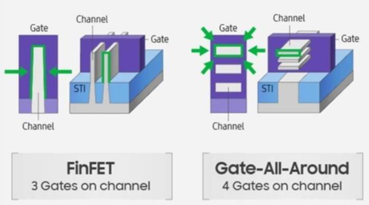 핀펫은 게이트와 채널 간 접하는 면적이 넓을수록 효율이 높아지는 점에 착안해 만들어진 구조다. 게이트와 채널이 3면에서 맞닿는 구조로, 접하는 면적을 키워 평면(2D) 구조의 트랜지스터가 갖는 기술적 한계를 극복하는 방식이다. 이러한 핀펫 트랜지스터는 현재 5나노 첨단 공정에서 활용되고 있지만, 4나노 이하 공정에서는 핀펫 구조로도 더는 동작 전압을 줄일 수 없는 한계가 발생한다.