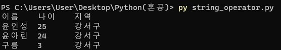 -문자열 연산자는 (+), (*), ([]), ([:])이 있다