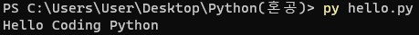 PS C:\Users\User\Desktop\Python(혼공)> py hello.py