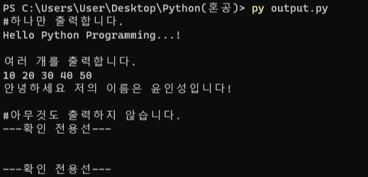 PS C:\Users\User\Desktop\Python(혼공)> python hello.py