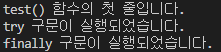 👉🏻두 가지 모두 "일단 프로그램이 어떻게든 끝났습니다."라는 fanally 구문이 실행된다.
